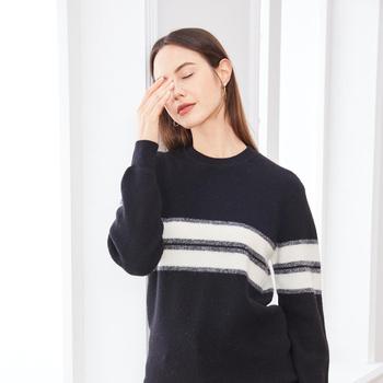 Maglione in Cashmere da donna 2024 autunno Versatile a girocollo Design a righe con caratteristiche calde e morbide